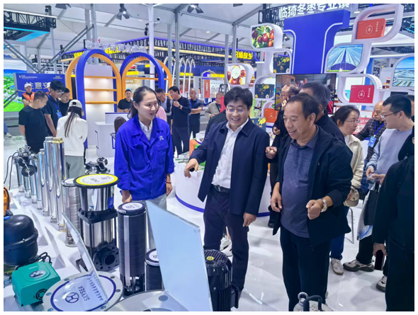 博览会现场,天海泵业展示了CDL泵、SP200-250QJ、获得“山西精品”的永磁同步电机系列、渗碳氮一体泵头、水肥一体机等新产品,这些产品吸引了众多参会领导、嘉宾以及专业观众的目光。运城市副市长薛永琦、运城市工业和信息化局局长白根虎现场助力专业镇企业在展示平台精准传递品牌价值,集团公司董事长耿尚友亲自推介,展现了企业在水泵制造领域的技术实力和创新成果。在展会期间,天海泵业的展位前人潮涌动,不少专业采购商和行业人士就产品性能、技术创新以及未来合作方向等内容与企业代表进行了深入交流。